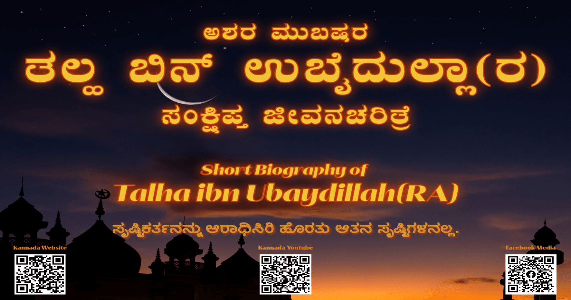 ಅಬೂಬಕರ್(ರ) ಹೇಳುತ್ತಾರೆ: “ಆಗ ನಾನು ಮತ್ತು ಅಬೂ ಉಬೈದ ಪ್ರವಾದಿ(ಸ) ರಿಂದ ದೂರವಿದ್ದೆವು. ಅವರಿಗೆ ಸಹಾಯ ಮಾಡಲು ಹತ್ತಿರ ಬಂದಾಗ, ಪ್ರವಾದಿ(ಸ) ಹೇಳಿದರು: “ನನ್ನನ್ನು ಬಿಟ್ಟು ನಿಮ್ಮ ಸಹಚರನ (ತಲ್ಹ) ಬಳಿಗೆ ಹೋಗಿ.” ತಲ್ಹ ತೀವ್ರ ರಕ್ತಸ್ರಾವದಿಂದ ಪ್ರಜ್ಞಾಹೀನರಾಗಿ ಬಿದ್ದಿದ್ದರು. ಅವರ ದೇಹದಲ್ಲಿ ಖಡ್ಗ, ಈಟಿ ಮತ್ತು ಬಾಣದ 70 ಕ್ಕಿಂತಲೂ ಹೆಚ್ಚು ಗಾಯಗಳಿದ್ದವು. ಅವರ ಬೆರಳು ಕತ್ತರಿಸಲ್ಪಟ್ಟಿತ್ತು.”