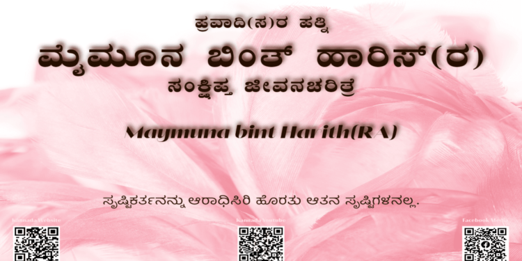 Read moreDetailsಮೈಮೂನ(ರ) ರವರ ಮೊದಲ ಹೆಸರು ಬರ್ರ ಎಂದಾಗಿತ್ತು. ಪ್ರವಾದಿ(ಸ) ರವರು ಅದನ್ನು ಮೈಮೂನ ಎಂದು ಬದಲಾಯಿಸಿದರು.